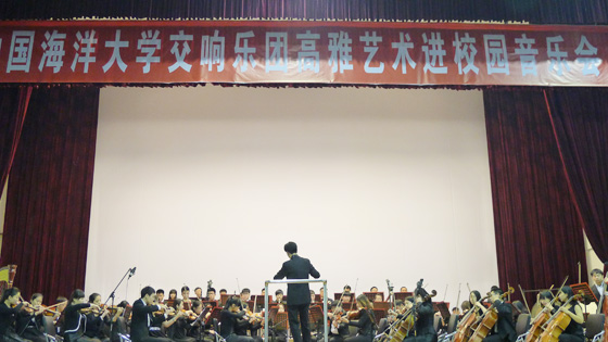 中国海洋大学交响乐团作为驻鲁高校代表团队于2012年被教育部正式列入“高雅艺术进校园”系列活动秩序册。“高雅艺术进校园活动”不仅是接受世界经典文化和优秀传统文化的有效平台,也是增加学生舞台艺术实践的宝贵机会和增加校际交流沟通的友谊桥梁。中国海洋大学交响乐团将继续根据教育部和省教育厅的要求和指示,不断深化“活动”的内涵建设,丰富艺术表现内容,扩大活动影响力,将“活动”推上新台阶。