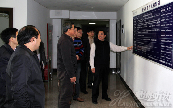 本站讯 为深入了解学校党的群众路线教育实践活动整改落实、建章立制环节的工作开展情况,教育部第四督导组副组长王鲁新,以及督导组成员钟一彪12月25日来到中国海洋大学进行实地调研,督查指导有关工作。