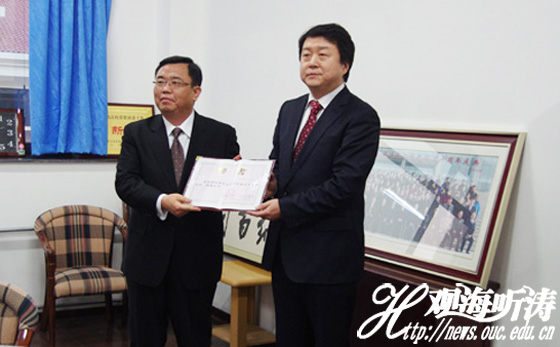 本站讯 2013年12月30日下午,中国海洋大学在法政学院举行海峡两岸关系研究所成立暨教授、研究员聘任仪式。学校党委副书记、副校长陈锐,原党委副书记李耀臻出席仪式。