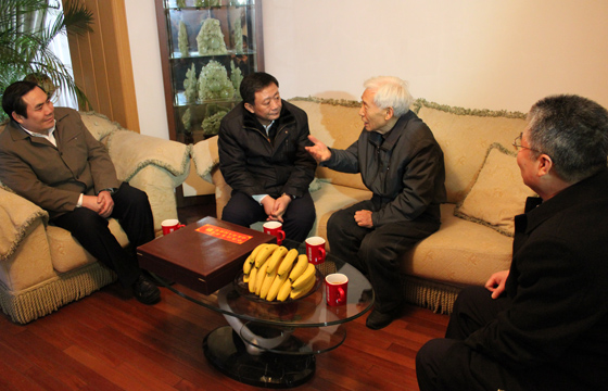 孙绍骋副省长(左二)一行专程到文圣常院士(右二)家中走访慰问