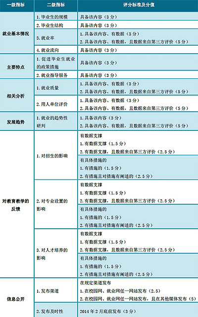 2013年11月,教育部发布《关于编制发布高校毕业生就业质量年度报告的通知》,要求“从2013年起,由各高校编制发布高校毕业生就业质量年度报告。教育部直属高校应在2014年2月底前完成本校首次毕业生就业质量年度报告编制发布工作,此后高校应在每年年底前发布当年就业质量年度报告”。
