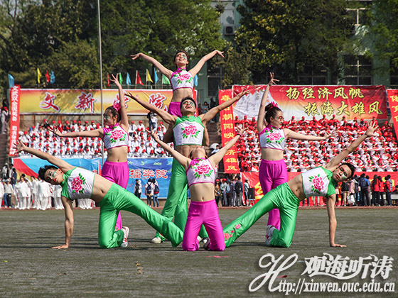 在运动员代表刘翔宇、裁判员代表许冠忠相继宣誓后,进行了教职工广播体操表演,教工们一改平时的严肃形象,把活力与青春的一面展现在了全场观众面前。水产学院,化学化工学院的健美操表演和管理学院的啦啦操表演更是将体育场内的气氛推向了又一个高潮。离退休老教师们的太极剑表演,刚柔并济,整齐划一,获得了观众的好评。