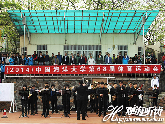 本站讯 2014年4月29日,中国海洋大学第68届体育运动会在鱼山校区体育场盛大开幕。学校党政领导于志刚、董双林、张静、李华军、王剑敏、卢光志,学校老领导施正铿等出席开幕式。副校长李巍然主持开幕式。