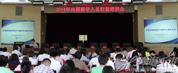 教育部出国留学服务中心办公室主任刘剑波,以及学校研究生院、国际合作与交流处、国际教育学院负责人等出席揭牌仪式。仪式结束后,学校举行了2014年出国留学人员行前培训会,培训主要内容包括国家出国留学政策、留学安全、在外中国公民权益保护、中西文化差异以及办理出国手续的相关程序和注意事项等。