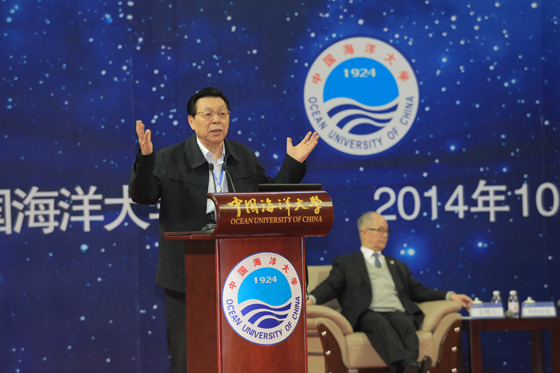 孙也刚在致辞中表示,海大人是幸运的,因为老校长管华诗院士的力邀,因为王蒙先生的加盟,因为各位大家的心血投入,海大人能够近距离领略名家的风采,感受文化的魅力,品位文化的大餐,分享智慧的光芒,从而更加坚定谋海济国的赤子情怀。“科学·人文·未来”论坛开创以来,既指引着中国海洋大学在强化发展特色、协调发展综合的道路上阔步前进,也鼓舞着海大坚定地走在崇尚学术的路上。孙也刚说,各位专家齐聚海大园,探讨“教育实现梦想”这个话题,架起梦想的桥梁,探索整个民族实现梦想的期望,令人期待,令人振奋。作为国家“985工程”和“211工程”建设高校中唯一一所海洋大学,中国海洋大学始终怀有一个育人兴海的中国梦。为此,学校将紧紧抓住海洋强国建设的历史机遇,积极推进高等教育综合改革,全面提升教育质量,加快建设国际知名、特色显著的高水平研究型大学。