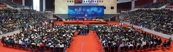 论坛由当代著名作家王蒙先生和中国工程院院士管华诗担任主席。在为期一天半的时间里,文史哲专家童庆炳、周国平、赵一凡、朱自强、朱永新、鲍鹏山、姑丽娜尔·吾甫力、钱文忠、李少君和科教、企业界专家秦伯益、沈国舫、欧阳自远、盖钧镒、张国伟、钱致榕、孟伟、麦康森、吕松涛、吴立新等诸多名家畅所欲言,与现场3000多名师生互动,共话“教育实现梦想”。