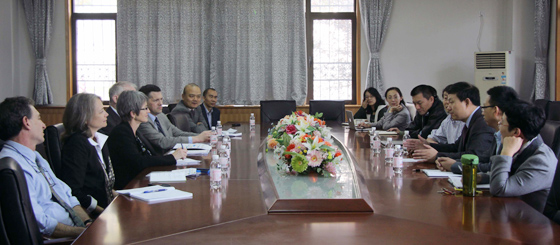本站讯 10月23日上午,美国国家自然科学基金会(The National Science Foundation简称NSF)下属极地局(DPP)主任Kelly Falkner率团访问中国海洋大学,李华军副校长和海洋环境学院赵进平教授、陈显尧教授等人在海洋环境学院会议室会见了客人,并就共同关心的话题进行座谈。
