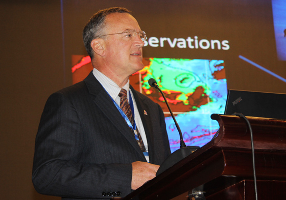 26日上午9时,由上海交通大学海洋研究院副院长连涟教授担任主持人的第三部分正式开始。中国海洋大学吴立新教授作题为“透明海洋:可持续发展必经之路”的大会主题报告。吴立新首先从西边界流引起的区域变暖的趋势谈起,并指出这种趋势越来越明显,而且正在给生态环境、渔业资源和气候变化带来很大的影响和风险。他指出,这种全球性的问题需要中国、日本、美国和欧洲以及南半球的许多国家联合起来共同应对。如何使海洋透明化?吴立新指出,最近,中国政府正在建设“海上丝绸之路”,这一宏伟战略的提出,为亚洲、欧洲以及美洲国家海洋科技的协作提供了契机。希望在协作中,一是形成立体海洋观测系统,做好海洋的观测工作,提升对海洋过程机理的认识;建立预测系统,预测未来特定一段时期内海洋环境、气候及资源的时空变化,使得海洋状态透明、过程透明、变化透明。加拿大贝德福德海洋研究所科学主任Alain Vézina博士、美国蒙特利湾水族馆研究所资深研发工程师William Kirkwood、法国海洋开发研究所高级顾问Yves Henocque博士、美国缅因大学海洋学院院长柴扉教授分别作了题为“加拿大政府政策体系下的贝德福德海洋研究所海洋科学规划”、“海洋科学的技术发展:技术开发与国际合作”、“保持海洋系统的完整性-科学与技术的作用”、“海洋教育跨学科发展与提高海洋资源的可持续利用”的报告。