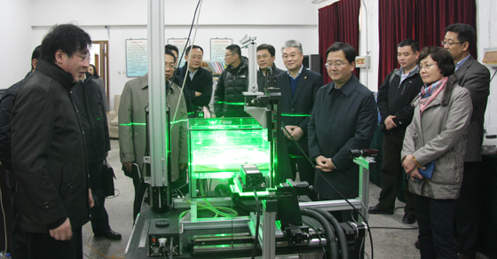 刘为民厅长(前排右二)、于志刚校长(后排右三)、姜波局长(前排右一)考察物理海洋教育部重点实验室