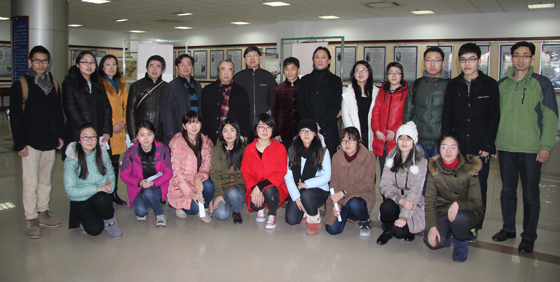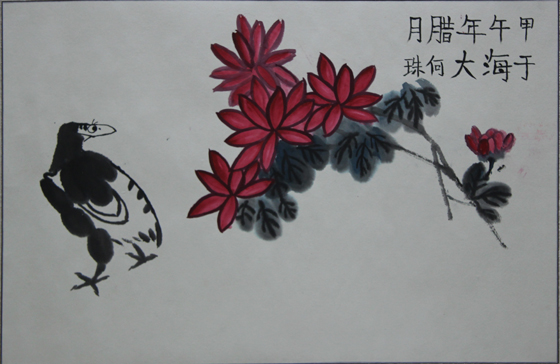 本站讯 2014年秋季学期,中国海洋大学首次聘请著名画家、青岛市中国画研究院院长谷宝玉先生为本科生开设“中国花鸟画绘画技法”课程。2015年1月30日,在本学期课程结课之际,学校将谷宝玉先生遴选出的30幅优秀学生作品在崂山校区图书馆文化展厅予以展出,供全校师生观赏。
