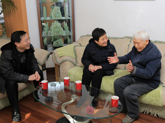 本站讯 2月8日,在春节到来之际,山东省委常委、组织部部长高晓兵,青岛市委常委、组织部部长边祥慧,山东省委组织部人才处处长张志波一行来到中国海洋大学,在学校党委书记孙也刚的陪同下,走访并慰问了两院院士文圣常、管华诗和冯士筰。
