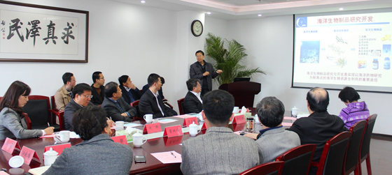 郭志伟副司长一行首先参观了研究院的研发大楼,现场听取了各产品技术研发室和大型服务中心有关责任教授的讲解,详细询问了构成完整海洋生物医药研发链条中的各个环节在研究院发展定位中的作用,以及研究院成果的产出形式、工程化的路径与方式、运行机制的创新点等方面的问题。