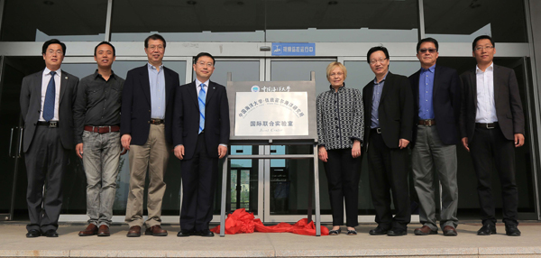 孙也刚书记(左四)、吴立新院士(右三)与Susan Avery所长(右四)共同为国际联合实验室揭牌