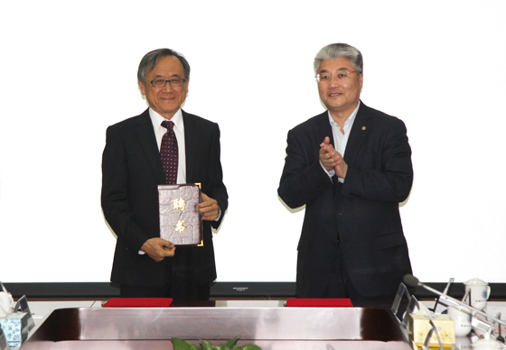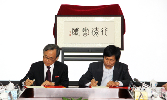修斌院长(右)与钱致榕先生签署行远书院与博雅书院合作备忘录