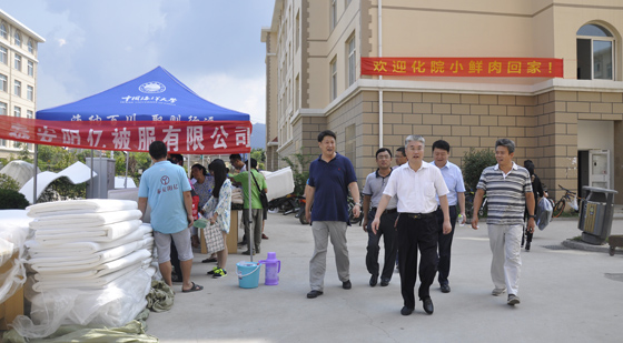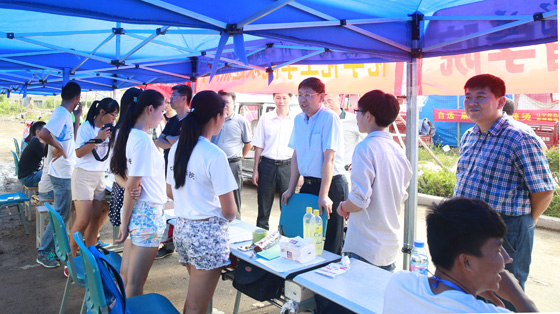校长于志刚(中)和党委副书记、副校长陈锐(右二)等检查迎新工作