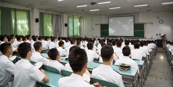 中国海洋大学国防生学员观看阅兵式