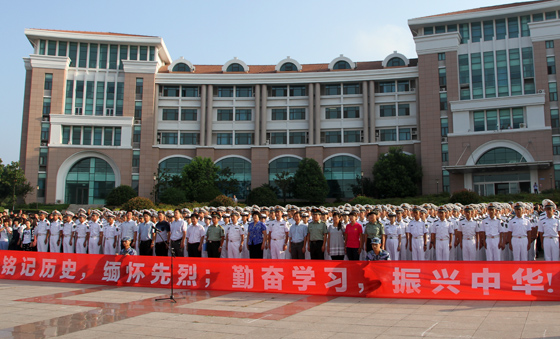 学校党委武装部部长李春雷在升旗仪式上致辞。他说,纪念抗日战争的伟大胜利,不是为了延续仇恨,而是为了从那段悲壮的历史中汲取伟大的精神力量,以此来促进中华民族的自觉、自省、自强。他希望同学们进一步增强国防意识,居安思危,有备无患。