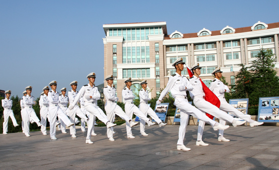驻校选培办主任曲凤桐,校党委宣传部部长陈鷟等相关部门和学院负责人,以及全体国防生和部分2015级新生参加了升旗仪式。