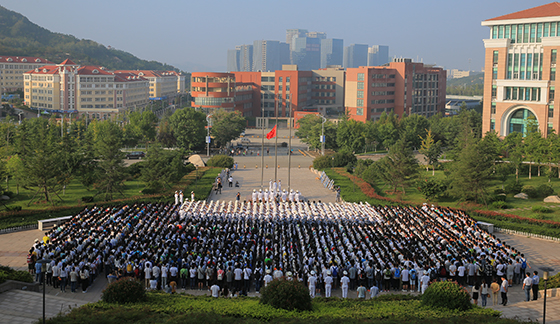 本站讯 铭记历史,振兴中华。9月3日早晨7时,中国海洋大学在行远广场举行升旗仪式,纪念中国人民抗日战争暨世界反法西斯战争胜利70周年。