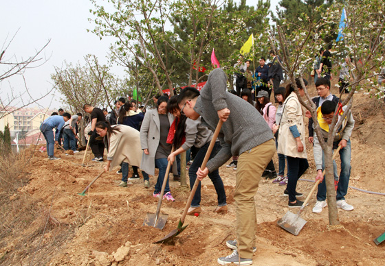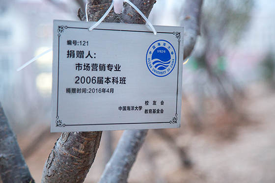 本站讯 春回大地,万象更新。为弘扬感恩母校、回馈社会的优良传统,中国海洋大学校友会、教育基金会倡议发起“樱花海”校友林的认捐和栽种活动,学校在崂山校区五子顶辟出专门林地,建设“樱花海”校友林。2016年4月7日,学校党委书记鞠传进,原党委书记、教育基金会理事长冯瑞龙,学校总会计师王剑敏,有关单位负责人及部分师生和校友来到“樱花海”校友林开展植树和认捐挂牌活动。师生和校友们相互配合,培土浇水,栽下一株株樱花树树苗,并给树苗悬挂捐赠铭牌。在近两个小时的时间里共植树20棵,悬挂捐赠铭牌80余个。