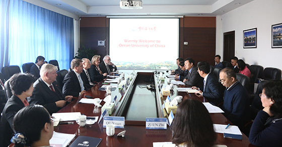 4月8日上午,奥尔登堡市政府代表团到中国海洋大学交流访问(摄影:冯文波)