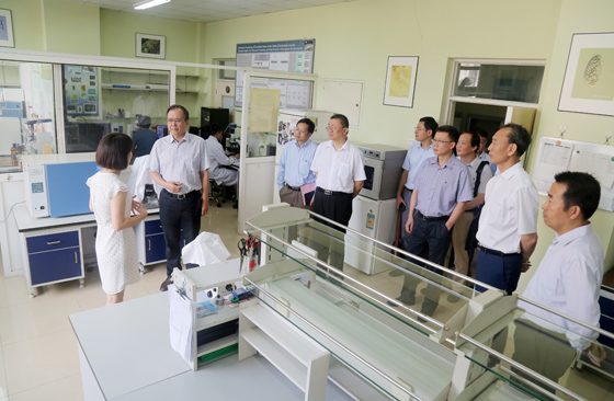北京大学校长林建华(左二)一行考察中国海洋大学实验室建设情况