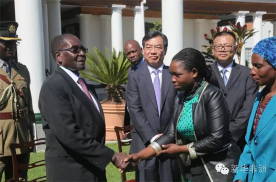 2016年8月26日,津巴布韦总统穆加贝(前排左一)在总统府举行仪式,欢送50名即将赴中国留学的学生。(图片来源:新华非洲)