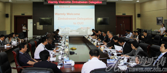 本站讯 2016年9月2日,津巴布韦信息广电部部长、总统奖学金执行董事克里斯托弗˙池度缇˙穆绍威先生率代表团访问中国海洋大学。校党委书记鞠传进、校长于志刚在图书馆第一会议室为代表团举行了庄重的欢迎仪式。双方共同回顾了中津两国教育文化交流的历史,就共同关心的问题进行了深入交流,对未来进行了展望。会谈结束后,双方参加了“津巴布韦来华留学生委托培养项目”开学典礼。