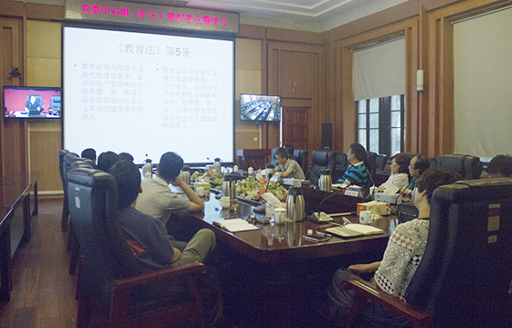 本站讯 9月9日上午,中国海洋大学召开党委中心组(扩大)第43次专题学习会,邀请法政学院桑本谦教授为大家作“《教育法》、《高等教育法》修订背景及内容学习辅导报告”,学校党政领导鞠传进、于志刚、张静、闫菊、王剑敏、卢光志、陈锐出席崂山校区主会场会议,鱼山校区设立了视频会议分会场。