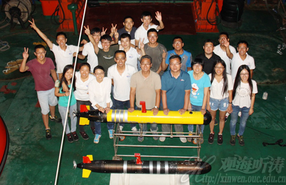 本站讯 2016年8月23日-25日和9月13日-15日,中国海洋大学信息科学与工程学院何波教授团队自主研发的小型自主式水下航行器(AUV)搭乘“海力”号海洋调查船,在黄海中部海域成功地进行了海上测试,各项技术性能达到了或超过了预定指标。此次海试检验的成功完成,表明中国海洋大学的小型AUV装备研发已经趋于成熟。