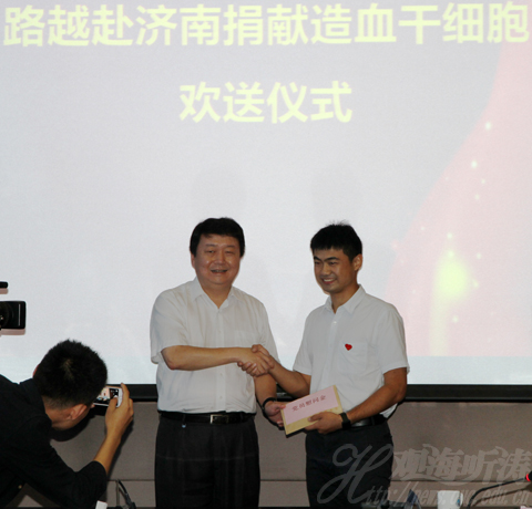 仪式结束后,路越在崂山区红十字会秘书长王鲁青的陪同下奔赴济南捐献造血干细胞。