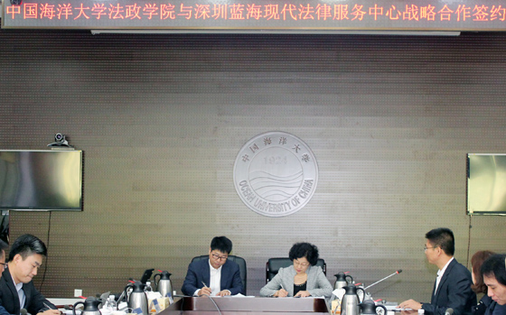 会上举行了中国海洋大学法政学院与最高院港澳台和外国法查明基地——深圳蓝海现代法律服务中心战略合作协议的签约仪式。法政学院院长刘惠荣教授、深圳蓝海现代法律服务中心首席运营官冯欣代表双方签约。双方将在最高人民法院指导下,在涉海外国法查明、“一带一路”沿线部分国家法律环境研究展开全面合作。