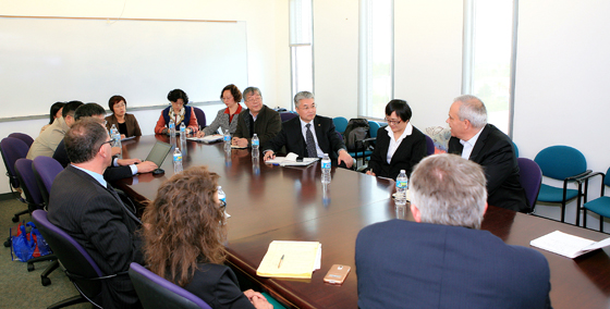 12月2日下午,在UA分管国际事务的副教务长Brent White教授陪同下,代表团分别与人文社会科学和自然科学与工程技术学科的有关院系进行了深入交流。在人文社会科学组的工作会谈中,法学院院长Marc Miller教授、管理学院院长Paulo Goes教授、社会与行为科学学院副院长Amy Kimme等分别就拟合作的专业表达了强烈的合作愿望,详细交流了申报合作办学机构的程序和要求。在与自然科学与工程技术学科组的工作会谈中,工学院院长Jeff Goldberg教授、理学院副院长Chris Impey教授、全球研究联盟副校长助理Randy Burd教授等一一介绍了所在学院的科研领域和期望合作的内容,对与中国海大的合作表现出浓厚的兴趣。于志刚校长在会谈中表示,两校在合作开办法学项目的过程中积累了高效率协作的宝贵经验,UA的发展充满活力,令人印象深刻;有这样的良好基础,两校的合作完全可以拓展至人文社会科学、自然科学、工程技术领域的教师交流和研究合作,开展全面战略合作的前景十分广阔。