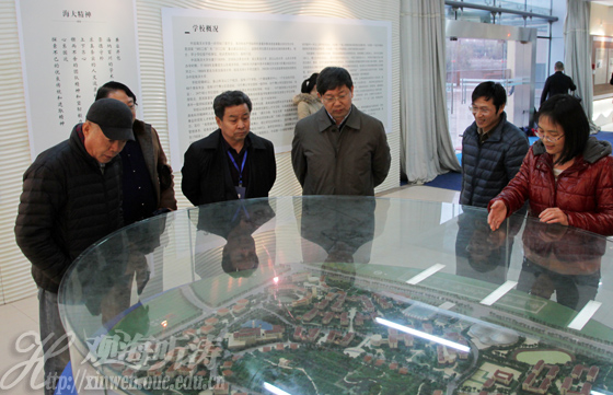李巍然副校长(右三)陪同辛华龙总校长(左三)等一行参观校史馆