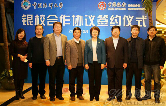 本站讯 12月27日,中国海洋大学校友卡合作发行协议续签仪式在中国银行青岛市分行举行。学校总会计师王剑敏与中国银行青岛市分行副行长王仁堂签署新一期中国海洋大学校友卡合作发行协议。学校党委副书记、副校长陈锐,中国银行青岛市分行党委书记、行长蒋昕等出席仪式。