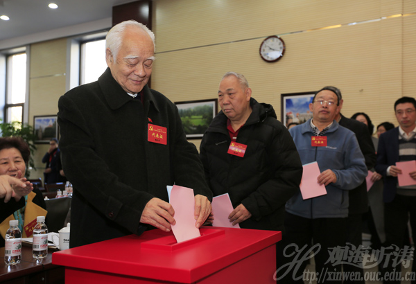 本站讯 1月11日上午,中国共产党中国海洋大学第十次代表大会在崂山校区图书馆第二会议室胜利闭幕。鞠传进同志主持大会。