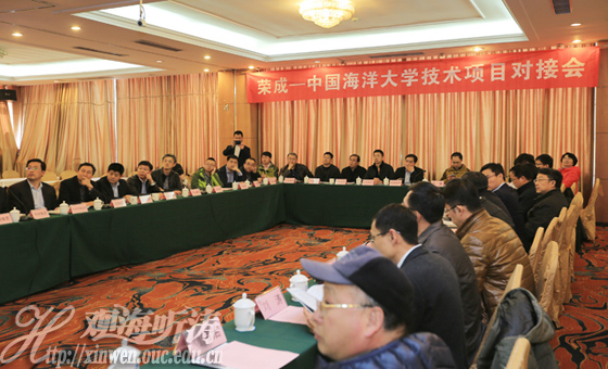中国海洋大学相关职能部门负责人、学生及教师代表,荣成有关单位领导及企业家代表观看了事迹展并参加了随后举办的洽谈活动。