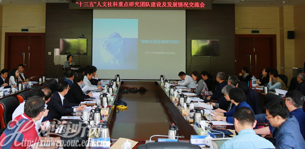 本站讯 5月5日下午,中国海洋大学“十三五”人文社科重点研究团队建设及发展情况交流会在图书馆第一会议室召开。校长于志刚、副校长吴立新、特邀专家庞中英教授、刘秦玉教授等出席会议。会议由文科处处长金天宇主持。