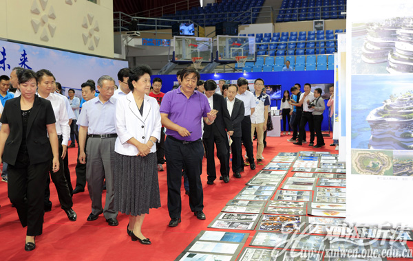 刘延东一行参观全国大中学生海洋文化创意设计大赛历届优秀作品展 (刘邦华 摄)