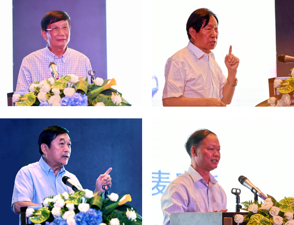 中国工程院院士潘德炉(左上)、侯保荣(右上)、孟伟(左下)、麦康森作主旨发言
