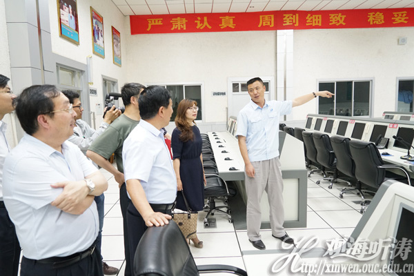 王洪志(中)向王剑敏一行讲解导流槽工作原理(刘莅 摄)