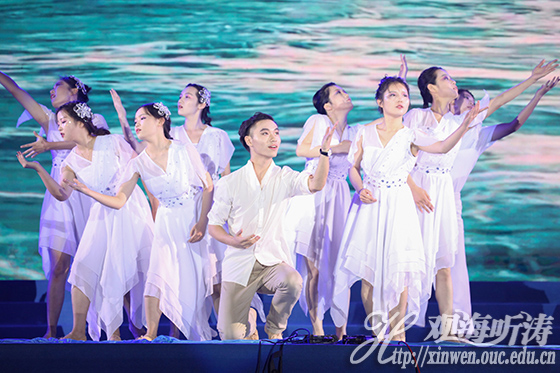 晚会以“毕生情·海大梦”为主题,由“绘情山海”“绘意校园”“绘梦青春”三个篇章组成。随着开场舞蹈《盛夏之约》那富有动感与活力的音乐奏响,晚会正式开始。