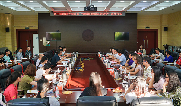 仪式由教育基金会副秘书长李睿青主持。仪式伊始,与会人员一起观看了由法政学院历届获助学生集体精心制作的中国海洋大学“锦绣前程教育基金”设立五周年纪念视频。随后,王剑敏总会计师与郭程董事长签署捐赠协议,并代表学校向郭程董事长赠送刻有“爱心育人 反哺情深”纪念牌。学生工作处副处长段善利宣读了《关于设立中国海洋大学“锦绣前程励志奖学金”的决定》和《关于颁发中国海洋大学首届“锦绣前程奖学金”的决定》。2014级水产养殖专业任静同学代表获奖学生发言。