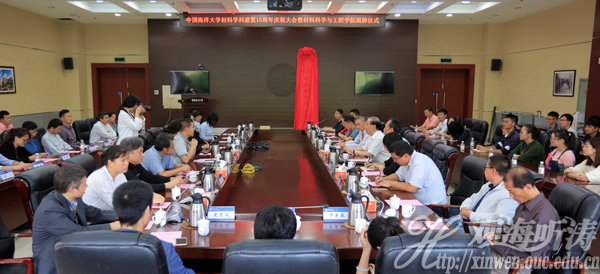 鞠传进代表学校党委和行政对材料学科建置15周年和材料科学与工程学院揭牌表示热烈的祝贺。他指出,材料学科是科学技术发展的物质基础,要抓住“海洋材料”这一交叉学科的特色。经过15年的发展与成长,学校材料学科建设取得了丰硕的成果,材料学科整体办学水平与实力的不断提升,为学校事业快速发展作出了重要贡献,希望材料科学与工程学院为学校进人世界一流大学做出材料人应有的贡献和担当。