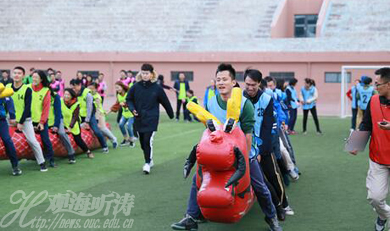 本站讯 11月16日下午,中国海洋大学2017年教职工趣味运动会在崂山校区体育场举行。校长于志刚,总会计师王剑敏,党委副书记、副校长陈锐出席开闭幕式,并为获奖代表队颁奖。