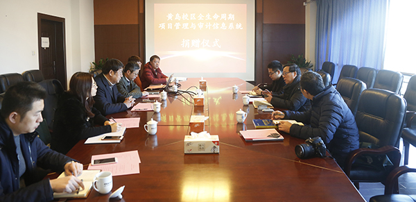 捐赠仪式由黄岛校区建设指挥部副总指挥、基建与后勤管理处副处长李创业主持。北京金马威工程咨询有限公司、北京金马威管理软件开发有限公司相关负责同志,学校黄岛校区建设指挥部、基建与后勤管理处相关人员参加捐赠仪式。