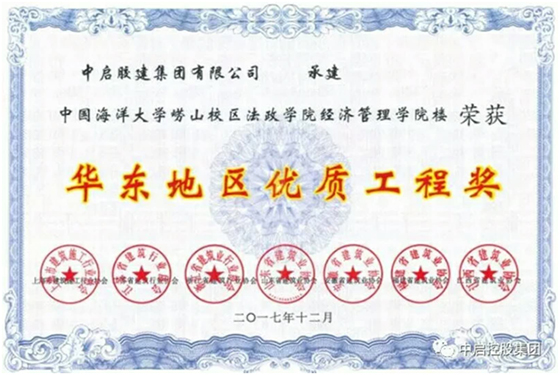 本站讯 日前,华东六省一市建筑业协会公布了2017年度“华东地区优质工程奖”,中国海洋大学崂山校区文科楼二期工程(即法政楼、经济楼和管理楼)获奖。“华东地区优质工程奖”是华东六省一市建设工程质量最高荣誉奖,每年评审一次,由华东地区六省一市建筑(行)业协会联席会审定。