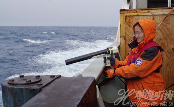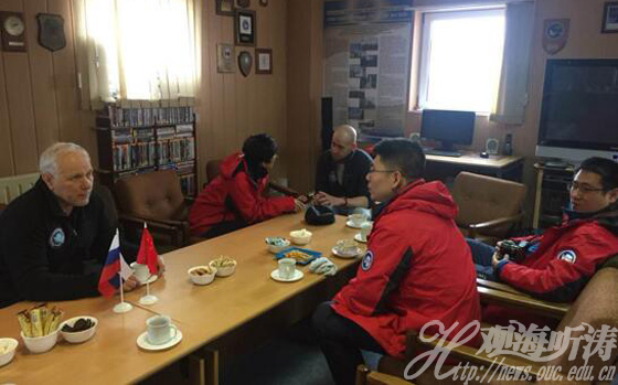 参加此次南极考察的中国海洋大学师生有海洋与大气学院史久新教授、矫玉田教授级高工、硕士研究生权陕媛和法政学院董跃副教授。其中,矫玉田高工于去年11月7日乘极地破冰船“雪龙”号从上海出发,参加第一航段;史久新教授和权陕媛于今年2月22日从新西兰登船,参加第二航段;董跃副教授于今年1月21日,乘飞机赴南极长城站进行考察。