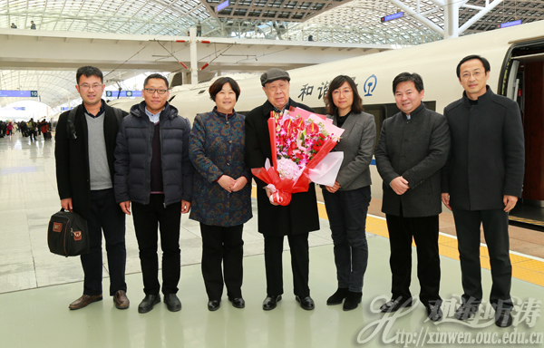 12月17日,管华诗院士一行从济南返回青岛,校党委常务副书记张静代表学校前往车站迎接。