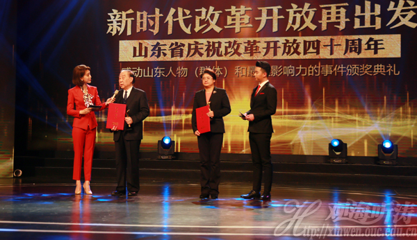 本站讯 在改革开放40周年之际,山东省委宣传部、省委改革办、省委党史研究院、大众报业集团、山东广播电视台在全省联合开展了庆祝改革开放40周年感动山东人物和最具影响力的事件评选活动。中国工程院院士、中国海洋大学教授、青岛海洋科学与技术试点国家实验室学术委员会主任管华诗成功入选。12月16日晚,“新时代改革开放再出发”——山东省庆祝改革开放四十周年感动山东人物和最具影响力的事件颁奖典礼在山东广播电视台1200平方米演播厅隆重举行。山东省副省长孙继业为管华诗院士颁奖。